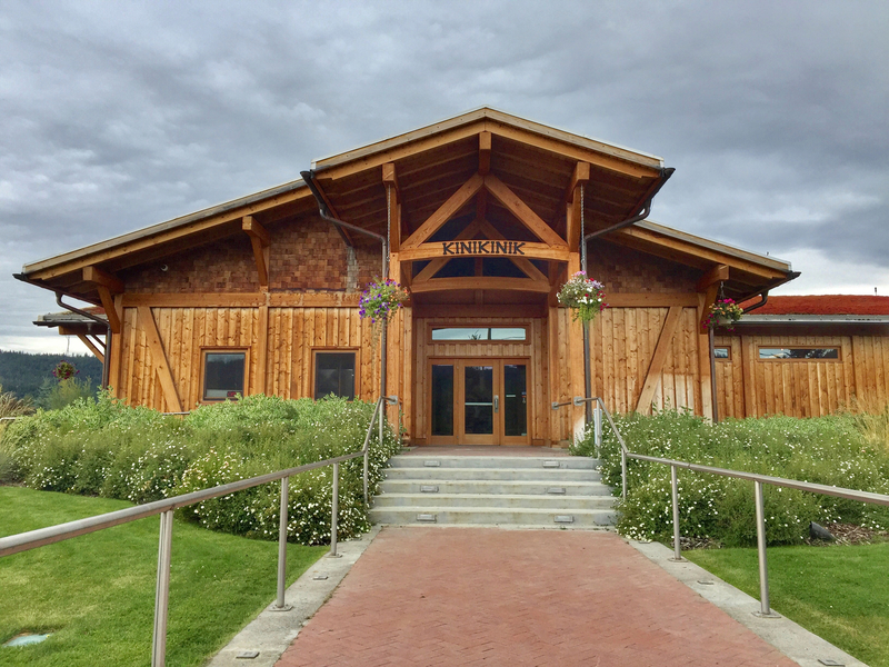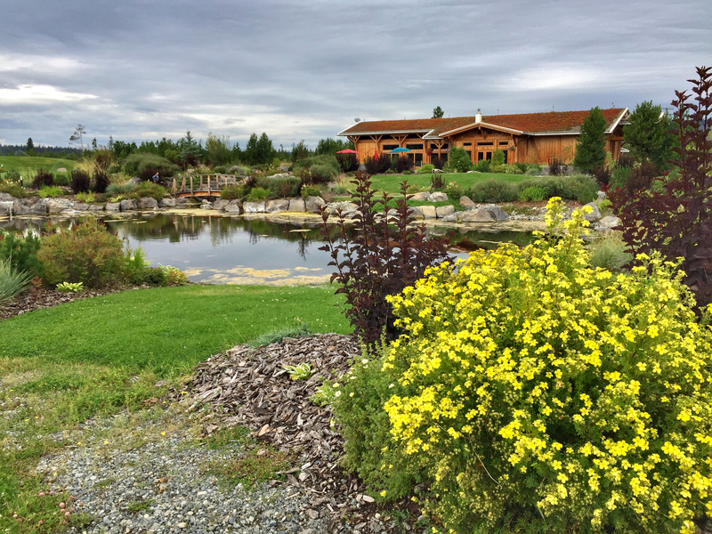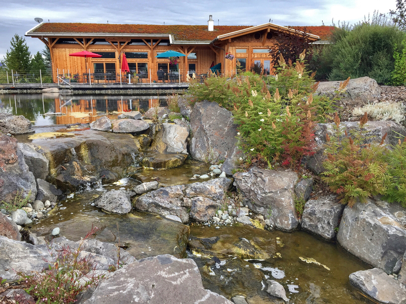 Das Restaurant KiNiKiNik haben wir auf der Hinfahrt schon bewundert. Es liegt inmitten saftig grüner Wiesen, in einer sehr schön angelegten Anlage. Auf der Heimfahrt kehren wir zum Mittagessen dort ein. Die liebevoll zubereiteten Speisen enthalten nur Zutaten aus kontrolliert biologischem Anbau. Das Fleisch stammt von den Tieren, die auf dem naheliegenden Ranch Land geboren, gezüchtet und mit Gras gefüttert werden. Das schmeckt man!