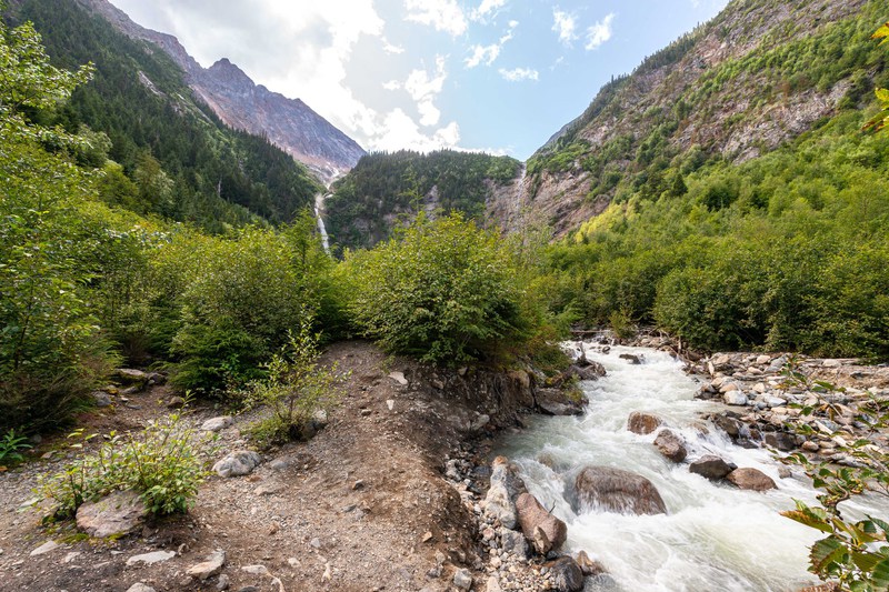 Hazelton an sich ist mit 270 Einwohnern nicht sehr groß, hat aber viele schöne historische Schätze zu bieten und schöne angelegte Parks direkt am Skeena River, an dem wir unser Nachtquartier aufschlagen. Für den nächsten Tag ist eine Wanderung zu den Twin Falls geplant.