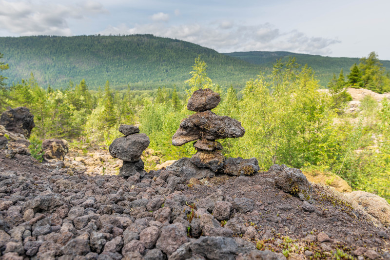 Der (Achtung Zungenbrecher) "Anhluut'ukwsim Laxmihl Angwinga'asanskwhl Nisga'a Gedenkstätte Lava Bed Park" (ja, so heißt er wirklich!) ist der erste Provinzpark, der gemeinsam von der First Nation und British Columbia verwaltet wird. Er ist fast 18.000 Hektar groß und entstand durch einen Vulkanausbruch im Jahr 1760. Die Lava zerstörte alles auf ihrem Weg und bedeckte zwei Nisga'a-Dörfer. Mehr als 2.000 Menschen kamen damals ums Leben. Noch heute dominieren die riesigen Lavabetten mit einer Ausdehnung von 10 x 3 Kilometer das Nass-Tal. Sie dienen als Denkmal für diejenigen, die damals ihr Leben verloren haben.
