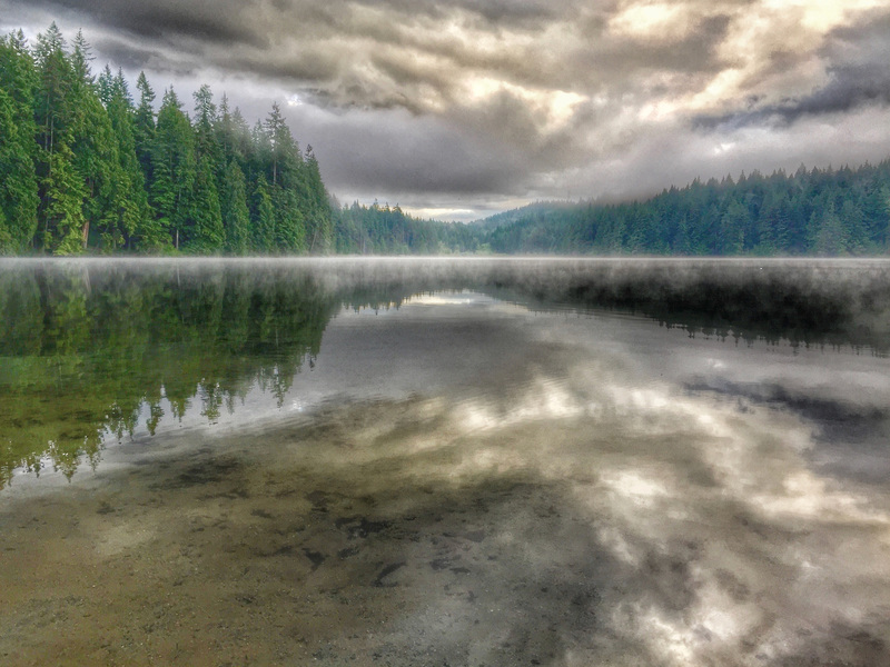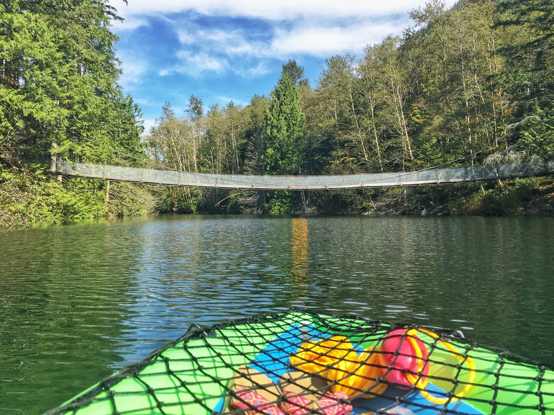 Einen der letzten schönen Sommertage mit dem Kajak auf dem Buntzen Lake verbringen, unbeschreiblich. Vor allem früh morgens ist hier noch alles still. Genau richtig, um den ca. 5 km langen und klaren See in Ruhe geniessen zu können. Meine Tour geht heute einmal um den See herum, mit kurzem Stopp an der Hängebrücke, am anderen Ende des Sees.