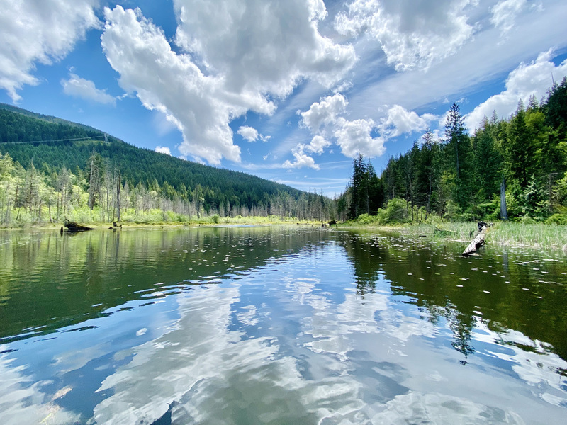 Der letzte Teil des Trails führt entlang am Buntzen-Lake. Man überquert einige kleine Bäche und Brücken und hat gelegentlich einen Blick auf den wunderschönen See und die umliegenden Berge.