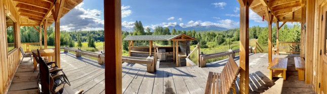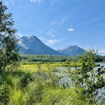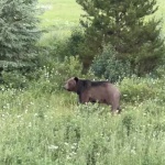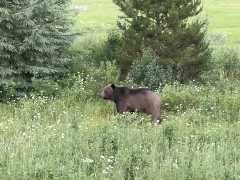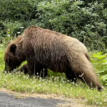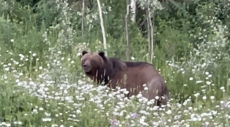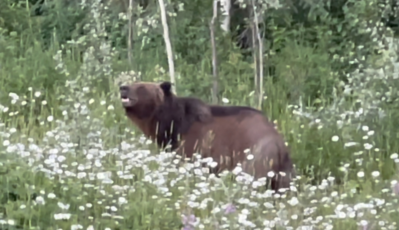 Ja, wir sind wieder hier. Wie schon im vergangenen Jahr gönnen wir uns auch in diesem Jahr einige Tage Natur pur. Es ist einfach unglaublich schön hier und für uns ein einzigartiger Ort zum relaxen und genießen. Die Lodge Hunde kennen uns inzwischen und kommen immer um sich Streicheleinheiten und Leckerlis abzuholen. Kolibris besuchen uns um vom süssen Nektar zu trinken und endlich sehen wir am Abend unseren ersten Grizzly von unserer Terrasse aus. Er hat und gewittert aber es störte ihn nicht weiter. Was ein unvergessliches Erlebnis.