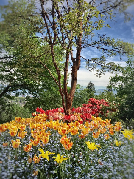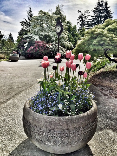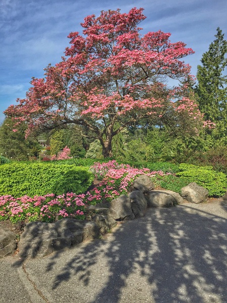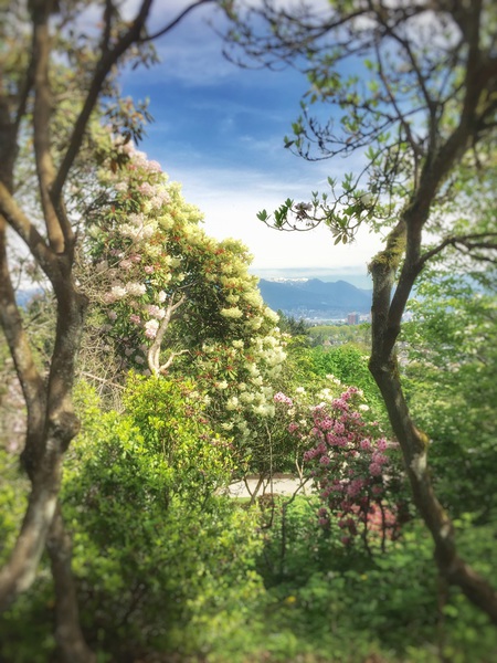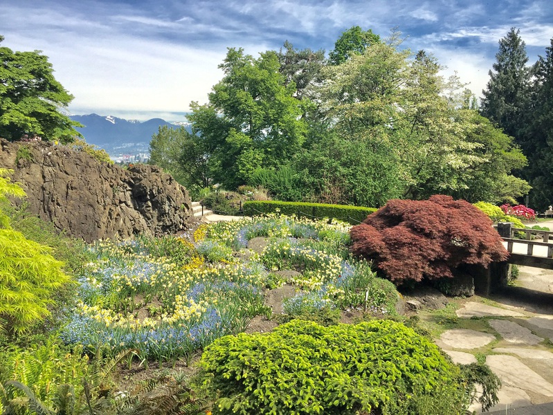 Mit 152 Metern über dem Meeresspiegel liegt der Park auf dem höchsten Punkt in Vancouver und bietet einen spektakulären Ausblick auf die Stadt und die dahinterliegenden Berge. Der 52 Hektar große Park beherbergt auch das beeindruckende Bloedel Conservatory mit zahlreichen Vogelarten und Pflanzen. Es gibt wunderschön angelegte Steingärten, viele exotische und einheimischen Bäume, viele Skulpturen und es duftet überall herrlich nach Frühlingsblumen und Rosen.