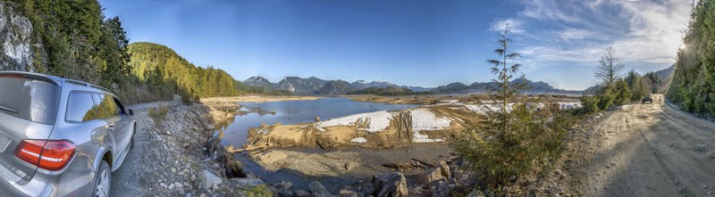 Eher spontan kamen wir auf die Idee,"lass uns mal den See entlangfahren"... Ich wunderte mich schon über die ganzen verschlammten Autos, Motorbikes, Quads und Buggys, die uns entgegenkamen. Nun wissen wir, wo die Kanadier die Tauglichkeit ihrer Allradfahrzeuge testen - genau - am Stave Lake. Ihr glaubt gar nicht, was sich da alles tummelte. Von klein bis groß, von jung bis alt, alle hatten ihren Spaß, frei nach dem Motto "wer am verschlammtesten ist, hat gewonnen". Ich merkte schon, wie es in Herrn Abenteuers Händen kribbelte, wie gerne hätte er doch mitgematscht. Ich konnte ihn gerade noch zurückhalten, aber Bock hätte ich auch darauf gehabt.